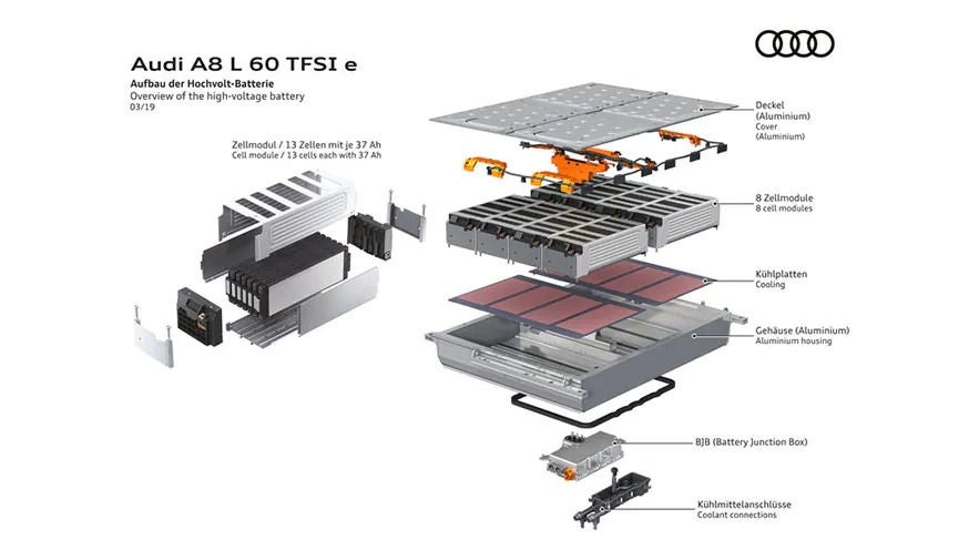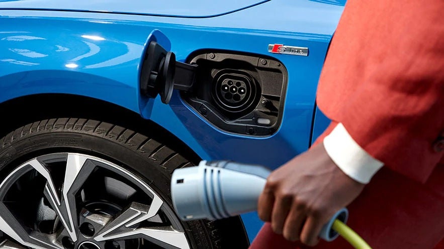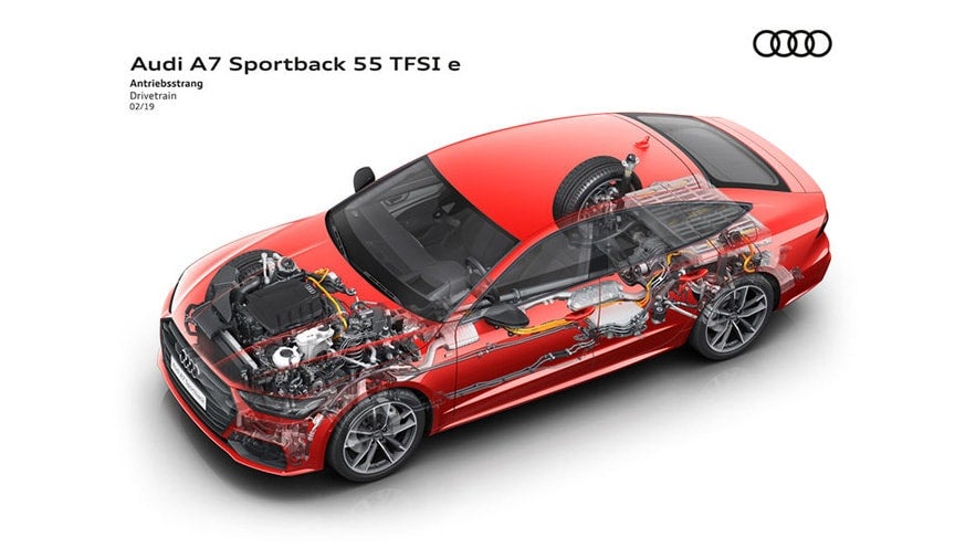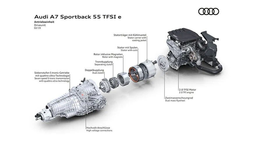 The term e-tron describes all purely electric battery-powered vehicles from Audi. The plug-in hybrid models come under the heading of "TFSI e". This suffix provides a clear indication that a vehicle can be moved in two ways. An electric drive with a compact battery is installed for short distances, and an additional combustion engine is provided for longer distances.