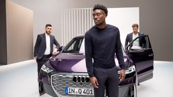 Video shoot brings together FC Bayern Munich players Alphonso Davies, Leon Goretzka and Lucas Hernández with the Audi Q4 e-tron.